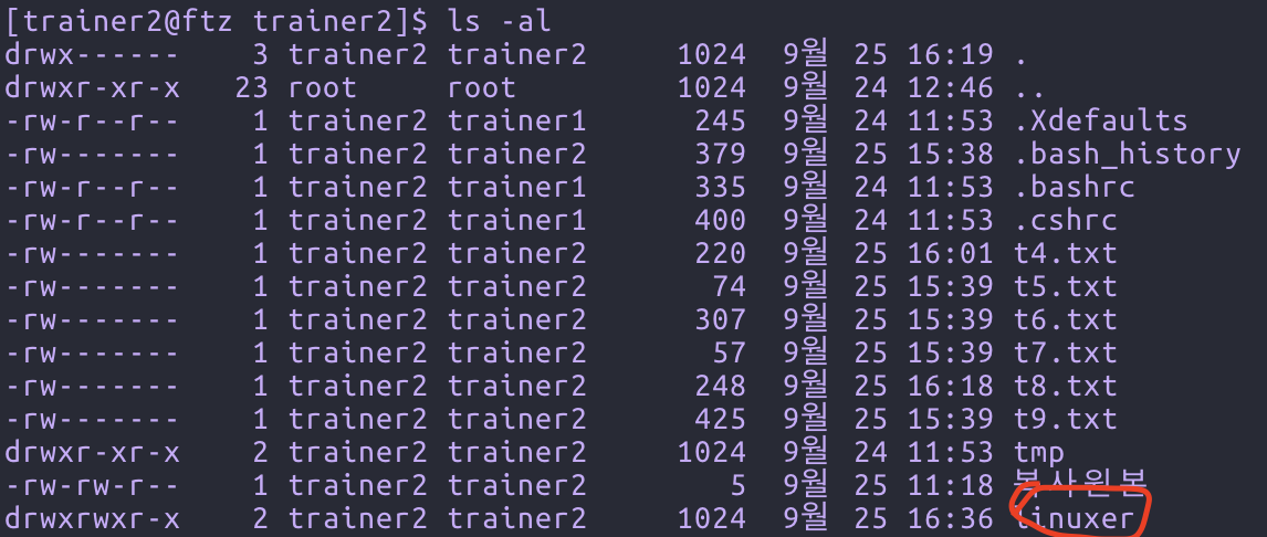 rmdir linuxer을 입력하고 ls -al을 입력하면 linuxer 디렉터리가 삭제됨을 확인할 수 있다.