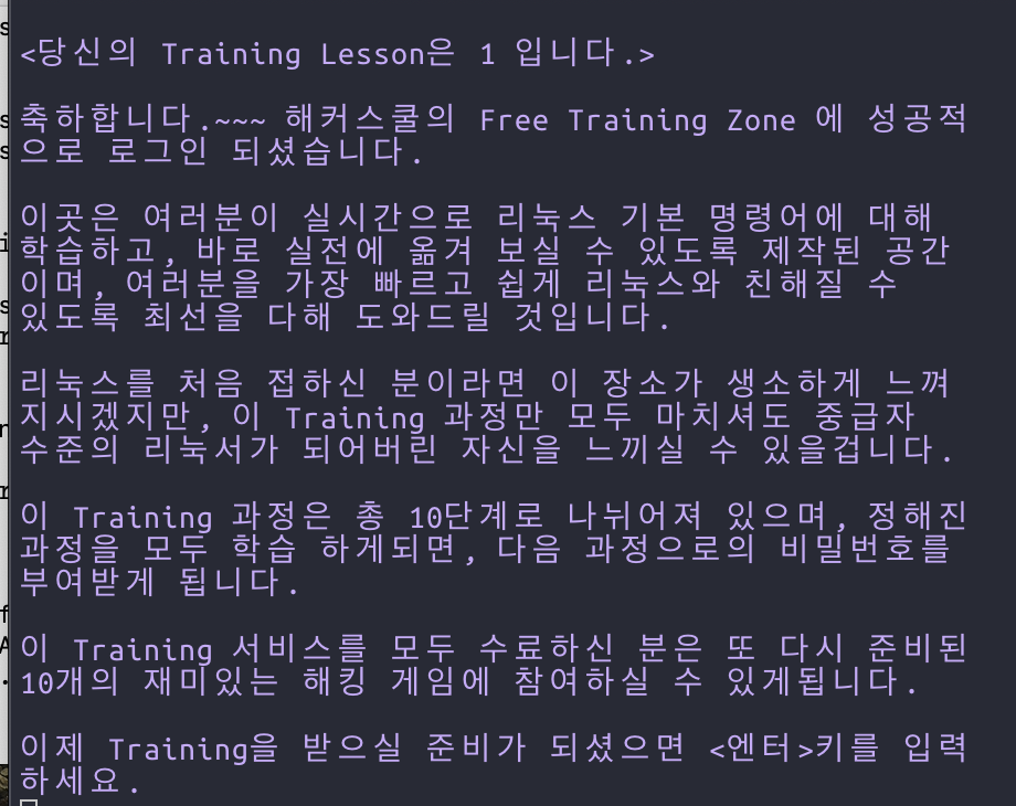 해커스쿨 서버는 현재 열려있지 않아서 로컬에 ftz 서버를 구축하고, ssh를 이용하여 접속했다.