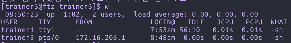 w명령어를 사용하면 현재 서버에 접속한 사용자 목록을 확인할 수 있다.