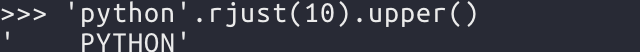 문자열 메서드는 처리한 결과를 반환하도록 만들어졌기 때문에 메서드를 계속 연결해서 호출하는 메서드 체이닝이 가능하다. input().split()도 메서드 체이닝이고, 다음 코드는 문자열을 오른쪽 정렬 한 뒤 대문자로 만드는 메서드 체이닝이다.