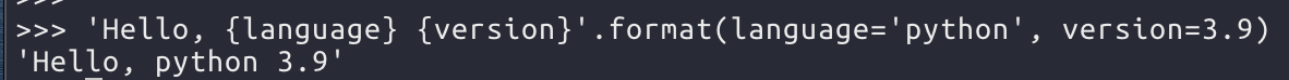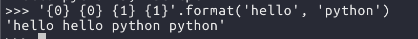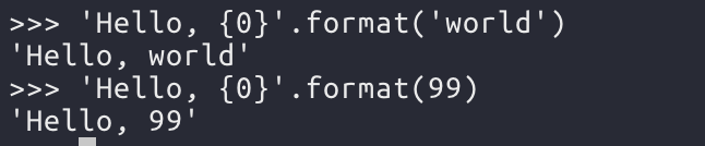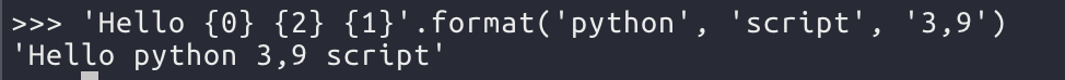 { } 안에 인덱스를 지정하고 format에는 인덱스가 증가하는 순서대로 값을 넣으면 된다. 문자열에는 인덱스 숫자에 해당하는 값이 들어간다.
