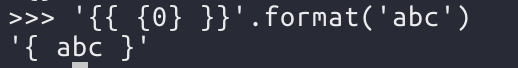 { } 중괄호 자체를 출력하려면 {{, }} 처럼 중괄호를 두번 사용하면 된다.