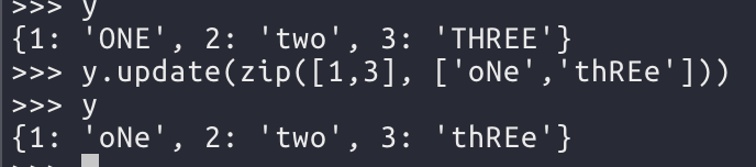 키 리스트와 값 리스트를 묶은 zip객체로도 값을 수정할 수 있다.