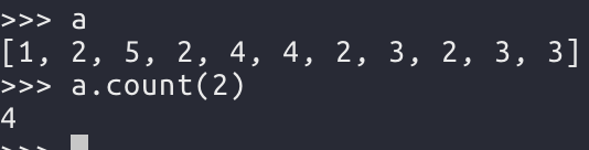 count('문자열')은 현재 문자열에서 특정 문자열이 몇 번 나오는지 확인할 수 있다.
