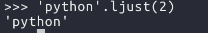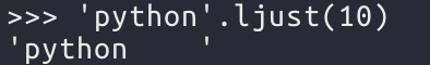 ljust(길이)는 문자열을 지정한 길이로 만들고, 왼쪽으로 정렬한 후, 남는 공간을 공백으로 채운다.