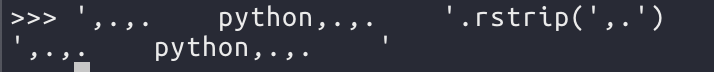 rstrip('삭제할 문자들')의 형식으로 사용하면 문자열 오른쪽에 있는 해당 문자를 모두 삭제한다.