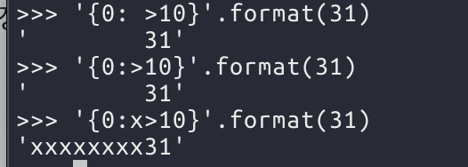 '{인덱스:채우기 정렬(부등호) 길이.자릿수 자료형}'