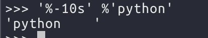 왼쪽 정렬은 문자열 길이에 -기호를 붙이면 된다.