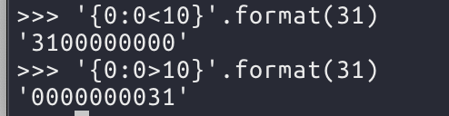 길이를 10으로 만들고 왼쪽, 오른쪽으로 정렬한 후 남은 공간을 0으로 채운 것이다.