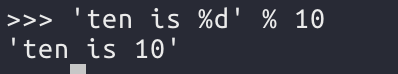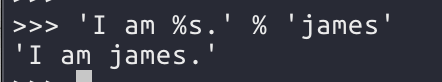서식 지정자는 %로 시작하고, 자료형을 뜻하는 문자가 붙는다. %s는 문자열 이라는 의미이다. 문자열 안에 서식지정자(%s)를 넣고 그 뒤에 %를 넣고 뒤에 서식 지정자에 넣고 싶은 문자열을 지정한다.