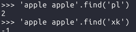 find('찾을 문자열')은 문자열에서 해당 문자열을 찾으면 위치 인덱스를 반환하고, 없으면 -1을 반환한다. 왼쪽에서 부터 문자열을 찾는데, 같은 문자열이 여러 개일 경우 처음 찾은 문자열의 인덱스를 반환한다.
