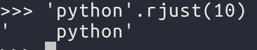 rjust(길이)는 문자열을 지정한 길이로 만들고, 오른쪽으로 정렬한 후 남은 공간을 공백으로 채운다.