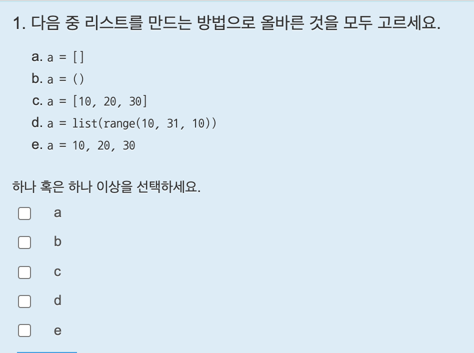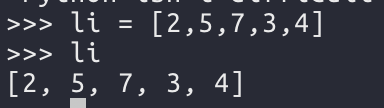 변수에 값을 저장할 때 [ ](대괄호)로 묶어주면 리스트가 되며, 각 값은 콤마(,)로 구분한다.