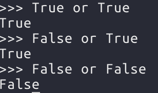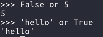 위와 같은 경우 파이썬에서 논리 연산자는 마지막으로 단락 평가를 실시한 값을 그대로 반환하기 때문이다. or 연산도 마찬가지로 마지막 단락 평가한 값이 반환된다.