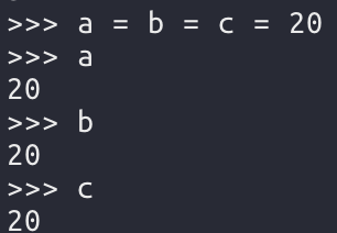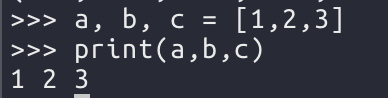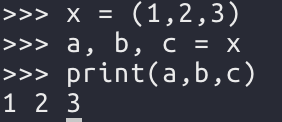 리스트와 튜플을 사용하여 다음과 같이 변수 여러개를 한 번에 만들 수 있다.