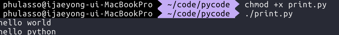 print() 함수는 변수나 값 여러개를 콤마(,) 로 구분하여 넣을 수 있다.