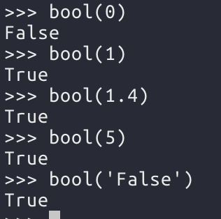 숫자에서 0은 False 이고, 0이 아닌값은 True이다. 문자열은 내용에 관계 없이 True 이다. 정수, 실수, 문자열 등을 불로 변환하려면 bool함수를 사용해야한다.