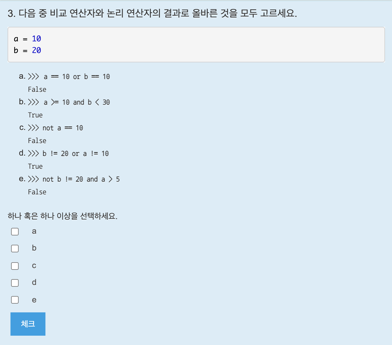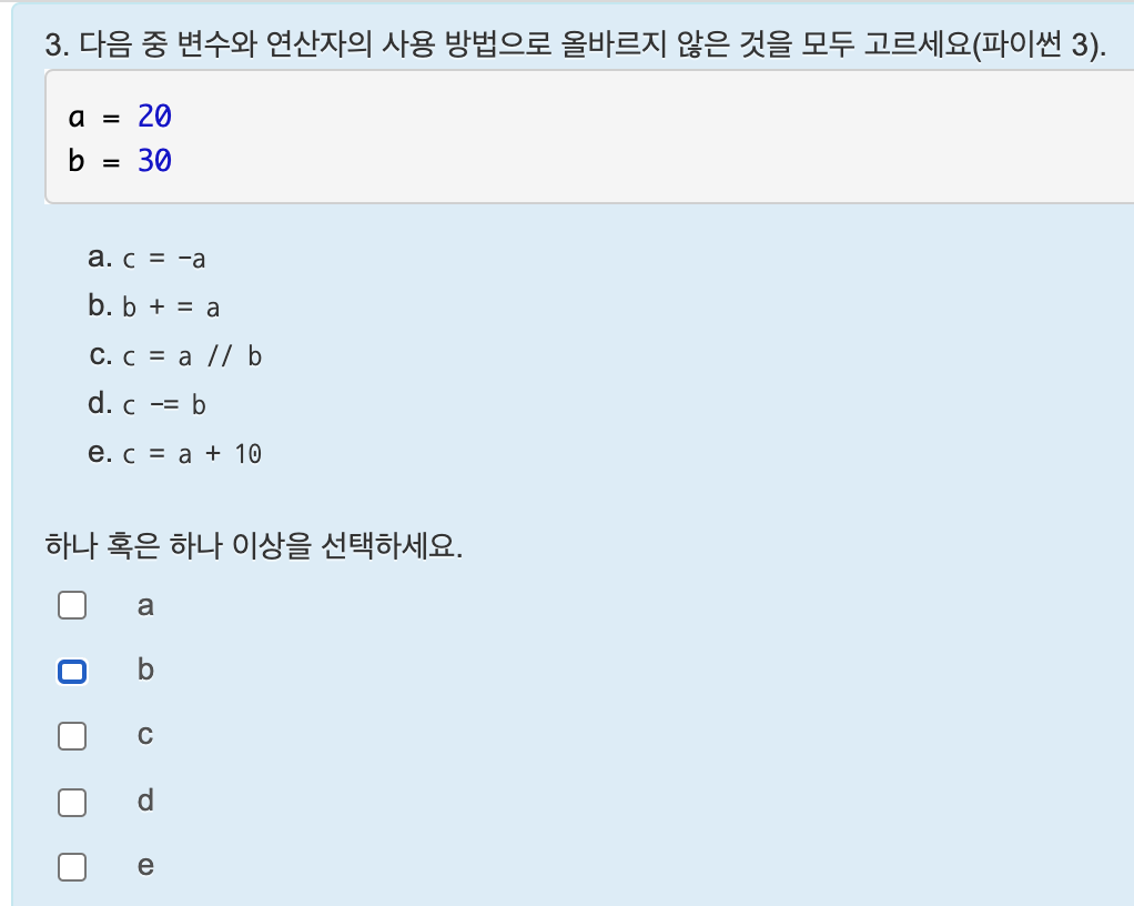 정답은 b,d,e이다.