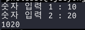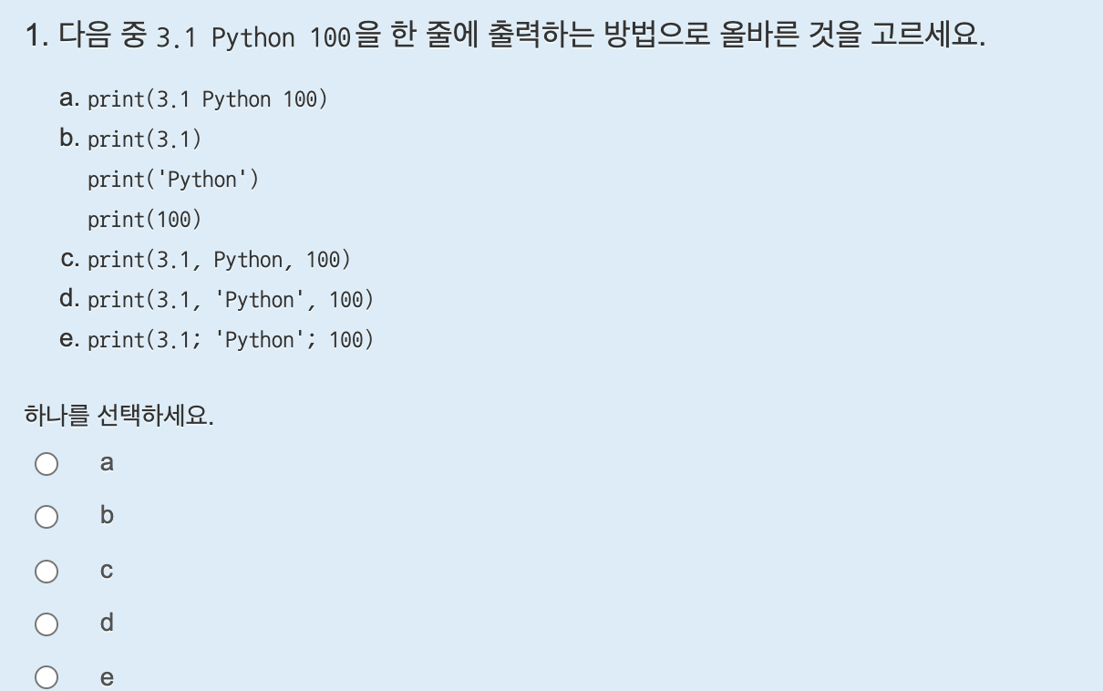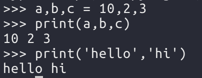 print에 값을 콤마로 구분하여 넣으면 공백으로 구분되어 한 줄로 출력된다.