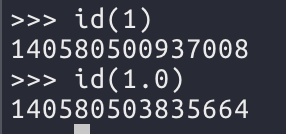 정수 객체와 실수 객체가 다른것은 id 함수를 사용하여 알 수 있다. id 함수는 객체의 고유한 값(메모리 주소)를 반환한다.