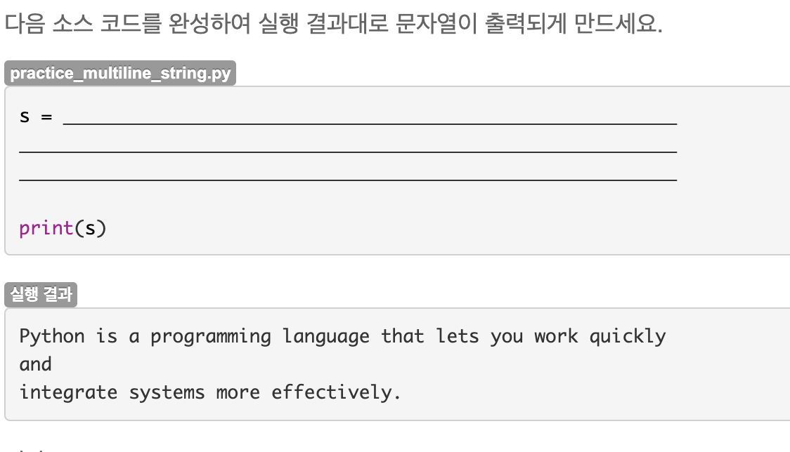 9.3 연습문제: 여러줄로 된 문자열 사용하기
