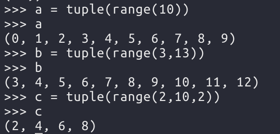 리스트와 동일하게 tuple() 안에 range()를 넣으면 된다.