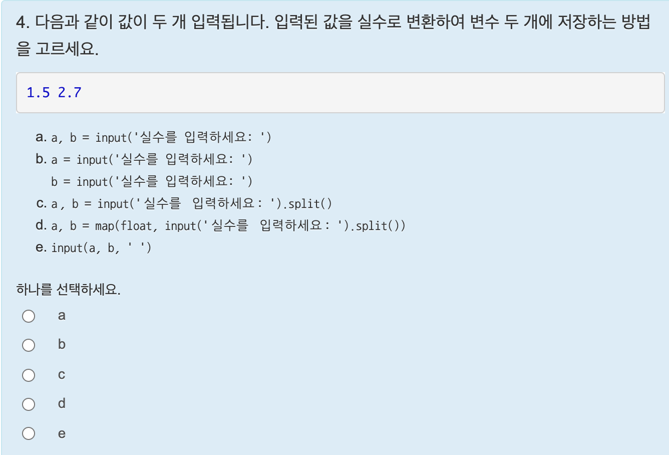 정답은 d 이다.