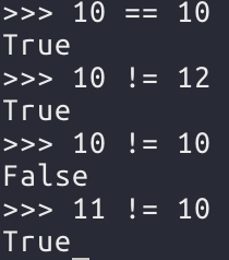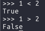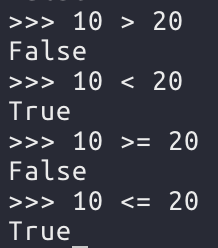 파이썬에서는 비교 연산자의 판단 결과로 True, False를 사용한다. 비교 결과가 맞으면 True, 틀리면 False이다.