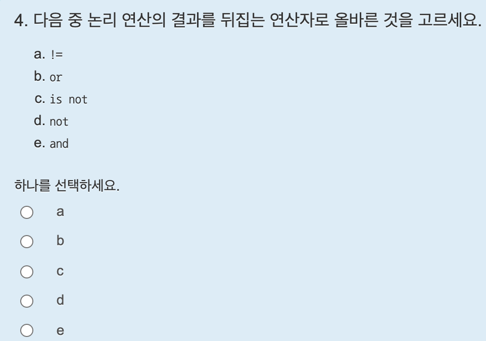 not 연산자는 논리값을 뒤집는다.