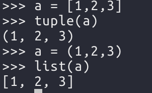 tuple() 안에 리스트를 넣거나 list() 안에 튜플을 넣으면 새로운 튜플이나 리스트를 만들 수 있다.