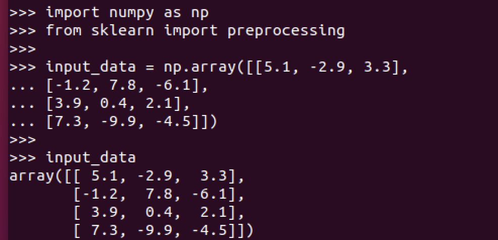 머신러닝을 구현할 때는 미 가공 데이터를 머신러닝 알고리즘이 처리할 수 있는 형태로 가공시켜야 한다. 이것을 전처리 라고 한다. 데이터 전처리는 파이썬의 numpy 모듈과 sklearn 모듈을 사용한다.