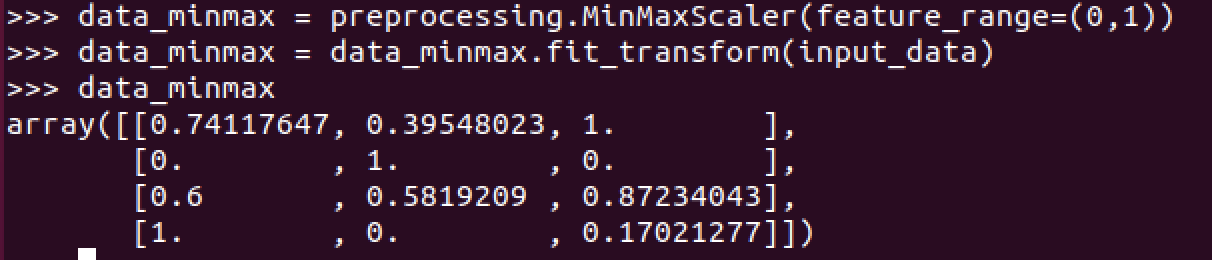 특징 베터의 각 요소에 대한 값의 범위는 일정하지 않을 수 있다. 머신 러닝 알고리즘을 학습시키려면 모든 특징을 동일 선상에서 비교할 수 있도록 각각의 특징에 대한 값의 범위를 일정한 기준으로 조정해야 한다.