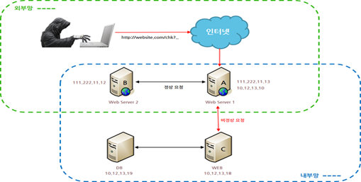 위 그림에서 정상적인 요청은 외부에서 접근 가능한 http:website.com/?url=http://111.222.11.12 으로 요청을 보내는 것이지만, 비정상 적인 요청은 외부에서는 접근할 수 없는 내부의 주소인 http:website.com/?url=http://10.12.13.18 로 요청을 보내는 것이다.