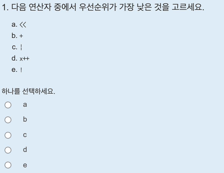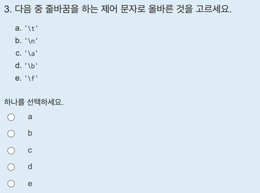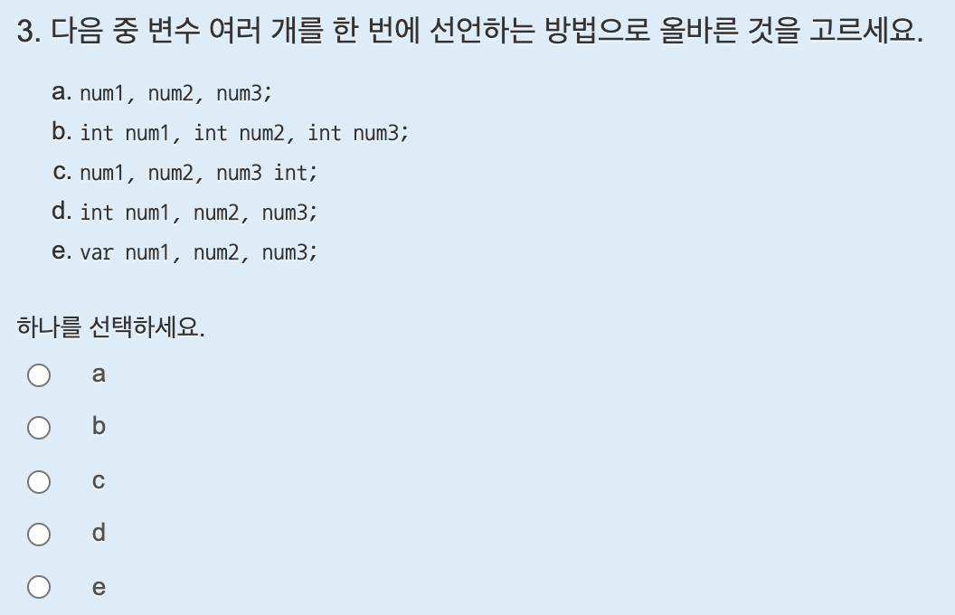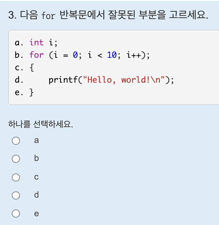 정답은 b이다. for문 뒤에는 세미클론이 오면 안된다.