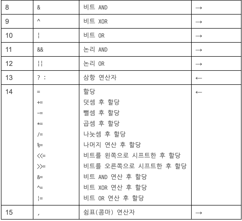 다음은 &, |, ^ 연산자로 각 비트를 연산했을 때의 결과(진리표) 이다.