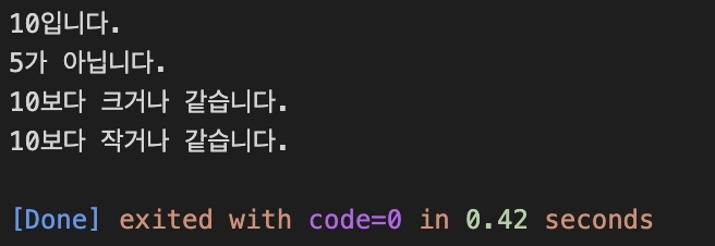 true, false를 출력하려면 다음과 같이 삼항연산자를 이용할 수 있다. 삼항연산자는 값의 참/거짓도 판단할 수 있어서 불 값이 들어있는 변수를 그대로 사용하면 된다. 서식지정자 없이 그대로 출력해도 되고, %s 서식지정자를 이용해도 된다.