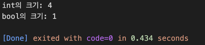 자료형 int의 크기는 4바이트이고, bool의 크기는 1바이트임을 확인할 수 있다.