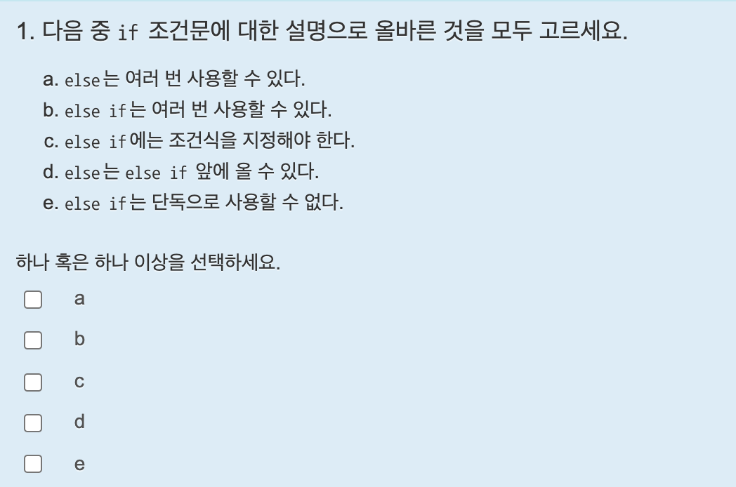 조건식에 true를 넣으면 if의 코드가 실행되고, false를 넣으면 else의 코드를 실행한다.